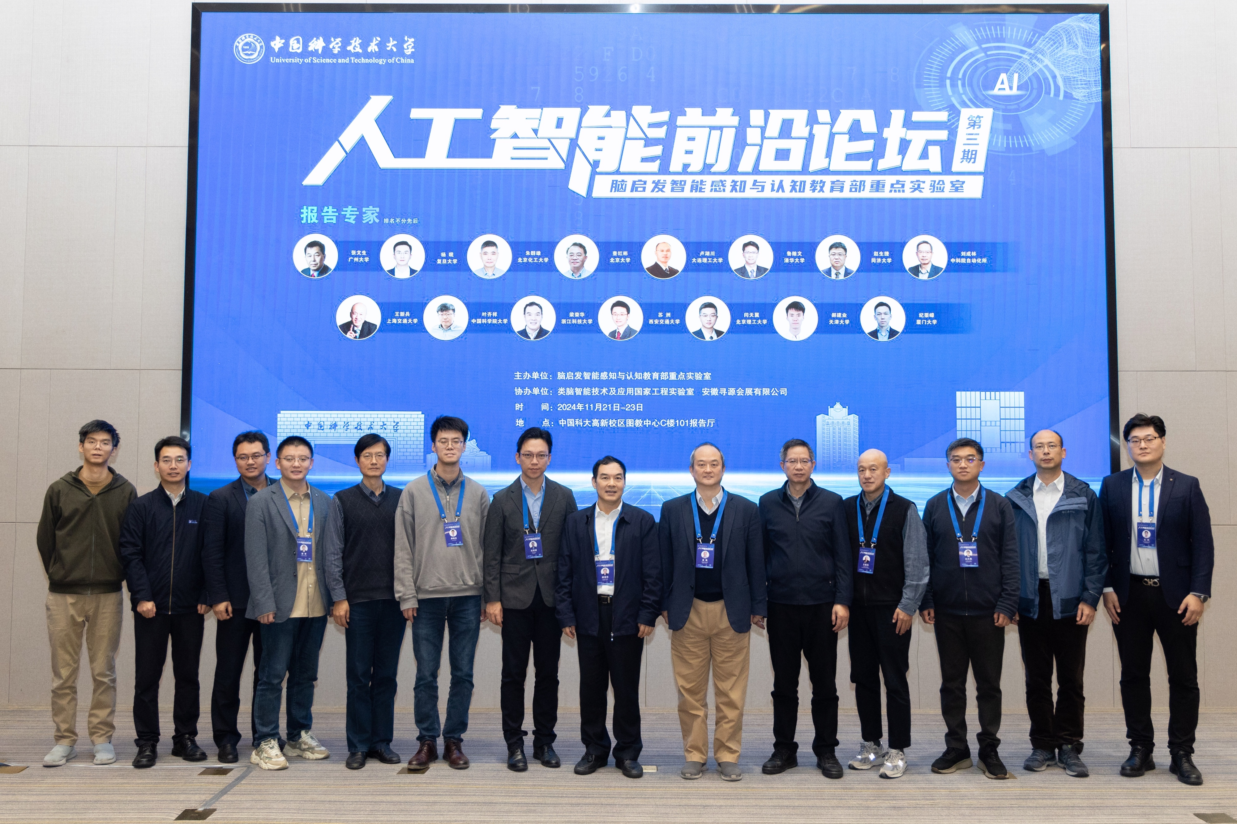 2024年11月21-23日,由脑启发智能感知与认知教育部重点实验室主办的第三期人工智能前沿论坛在优米娱乐app高新校区顺利召开,本次论坛邀请了广州大学张文生教授,复旦大学杨珉教授,北京化工大学朱群雄教授,北京大学查红彬教授,大连理工大学卢湖川教授,清华大学鲁继文教授,同济大学赵生捷教授,中科院自动化所刘成林研究员,上海交通大学王新兵教授,中国科学院大学叶齐祥教授,浙江工业大学梁荣华教授,西安交通大学苏洲教授,天津大学郝建业副教授,厦门大学纪荣嵘教授一共15位人工智能领域专家。优米娱乐app党委常委、副校长吴枫教授,脑启发智能感知与认知教育部重点实验室副主任王杰教授致欢迎辞。优米娱乐app人工智能与数据科学学院副院长刘淇教授,优米娱乐app冯福利教授主持。优米娱乐app信息科学技术学院党委书记李斌书记,优米娱乐app人工智能与数据科学学院副院长何向南教授,优米娱乐app张天柱教授等出席会议,此外现场来宾还有来自优米娱乐app、合肥工业大学、国防科技大学、安徽大学、浙江工业大学等高校师生及科研院所学者专家,参会总人次共计320余人。