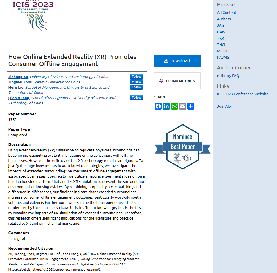 博士生徐嘉泓获ICIS 2023最佳论文提名